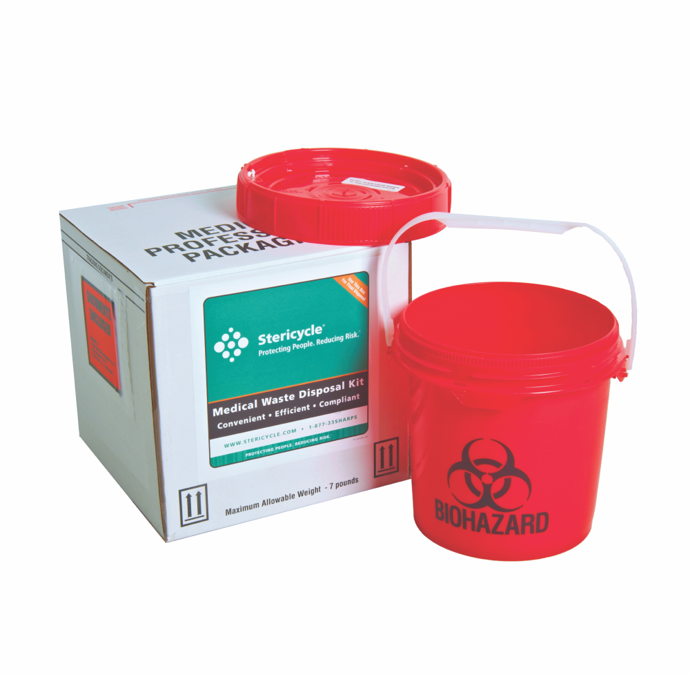SUPPLY-146 | ONE GALLON MEDICAL WASTE DISPOSAL SYSTEM | TOP DIAMETER 8.375"; HEIGHT 8" | UN3291 | HDPE CONTAINER, LINER, LINER TIE, INSTRUCTIONS, TAPE, RETURN SHIPPING BOX, MANIFEST PAPERWORK, RETURN SHIPPING, DISPOSAL AND CERTIFICATE OF DESTRUCTION. | 6 LBS. OF REGULATED MEDICAL WASTE. |